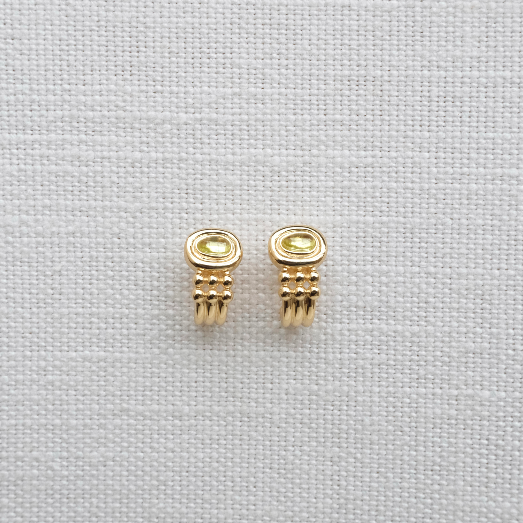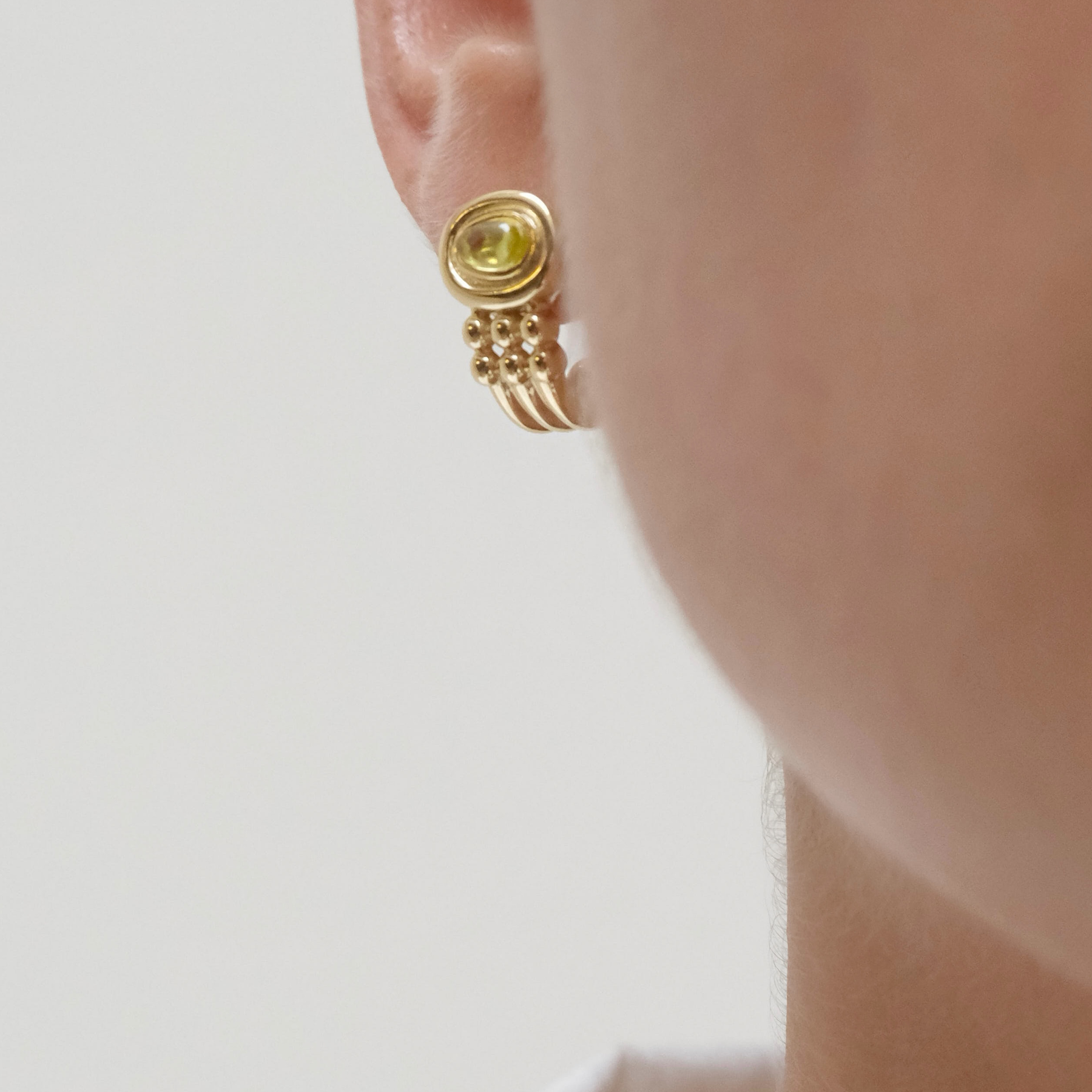 Deze oorbel met een kleine ring en een prachtige lichtgroene steen is de perfecte klassieker voor je collectie en heeft tegelijkertijd een heel uniek tintje. Elk 24Kae-stuk is met liefde en oog voor detail ontworpen door Kae Sutherland. Elke 24Kae-oorbel is voorzien van de authentieke signatuur van een 24Kae-gravure.