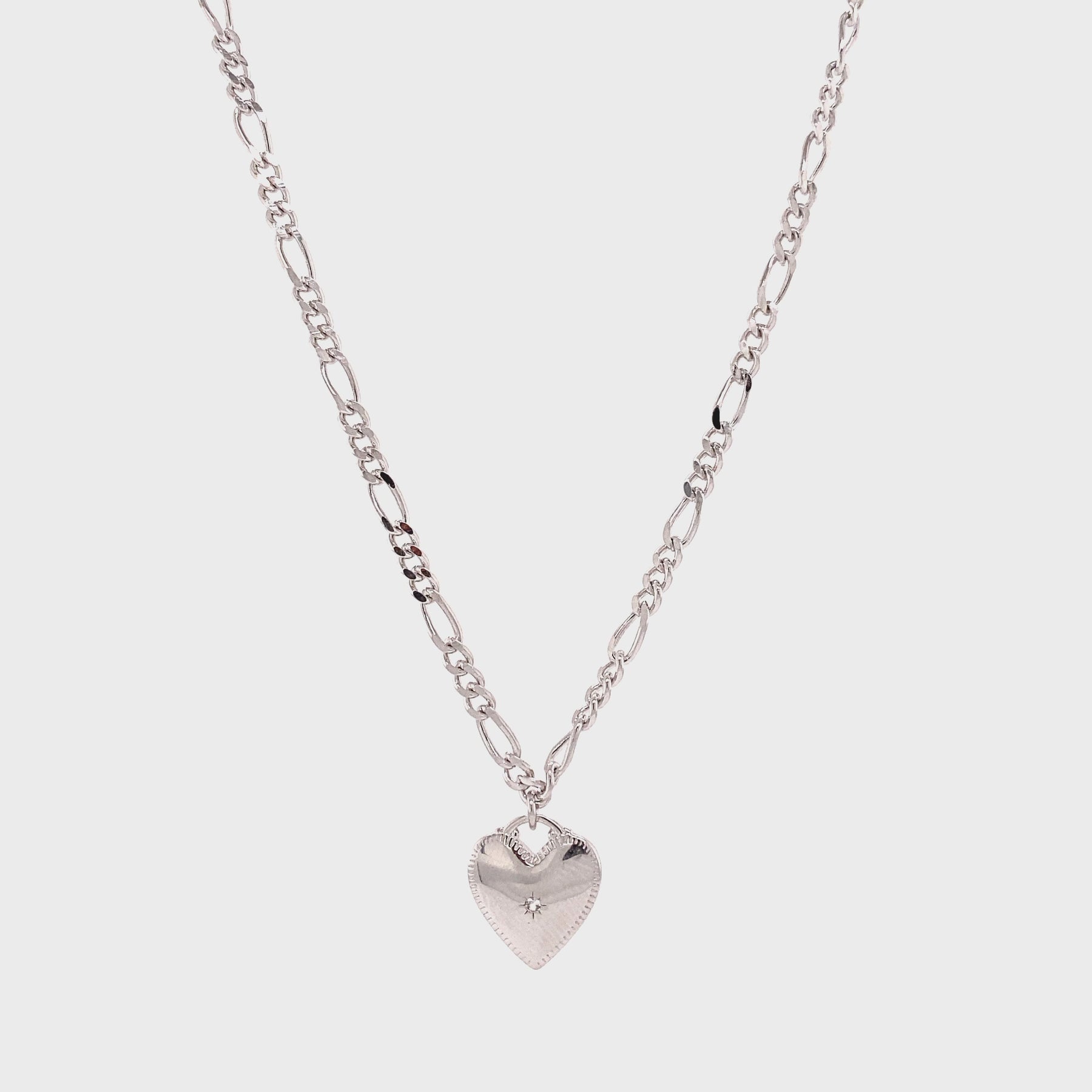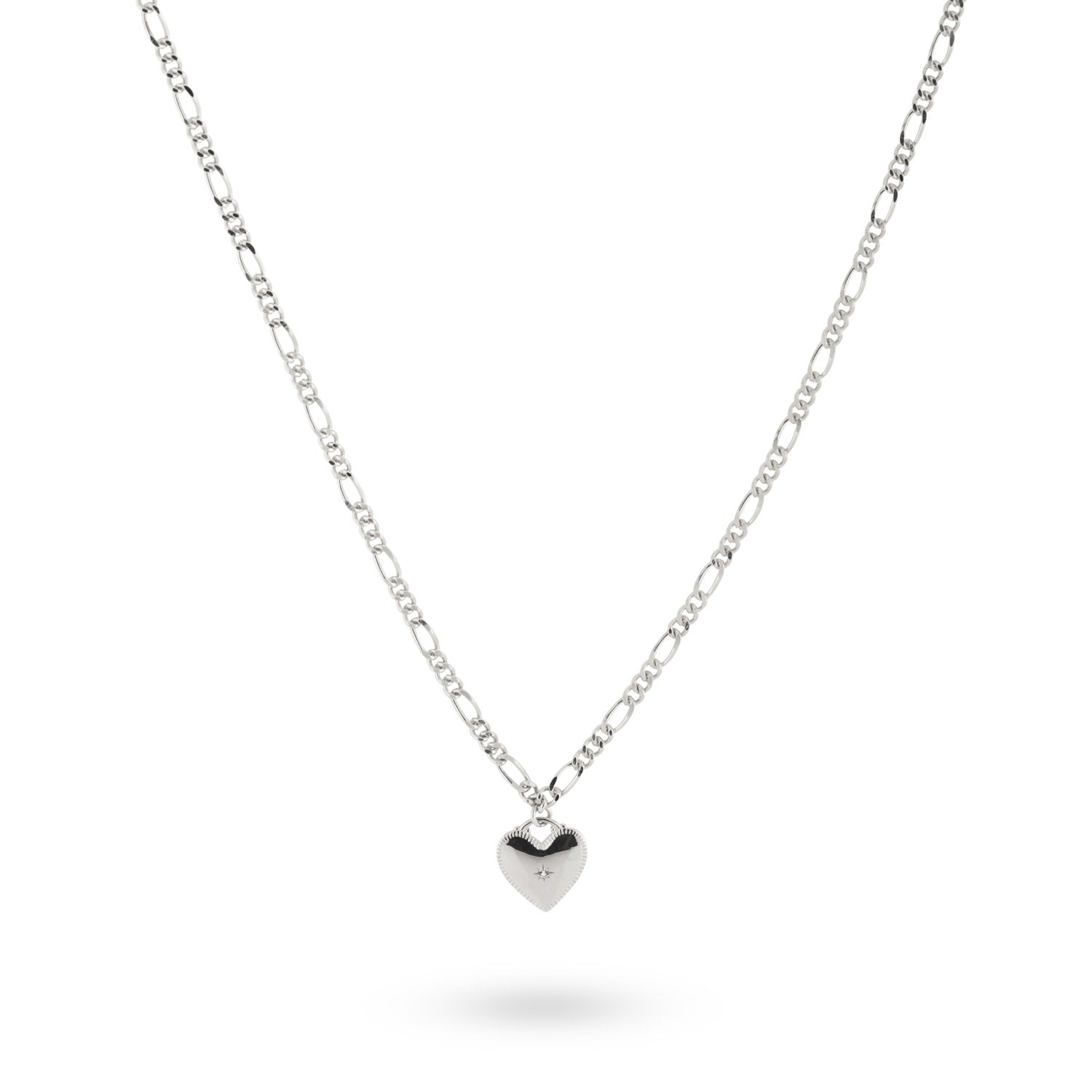 Deze 24Kae Figaro Schakelketting met hartvormige hanger geeft een speels effect. Het midden van het hartje bevat een klein steentje. De ketting kan kort gedragen worden op 45 cm maar kan ook langer door middel van het verlengstukje van 5,5cm. Dit sieraad is ook super geschikt om cadeau te geven aan een dierbare of geliefde. De ketting is gemaakt van 925 sterling zilver. Alle 24Kae sieraden zijn met liefde en oog voor detail ontworpen door Kae Sutherland. Ieder 24Kae collier wordt gekenmerkt door haar echtheid door middel van een unieke handgemaakte bedel met gravering en een touch of beige.