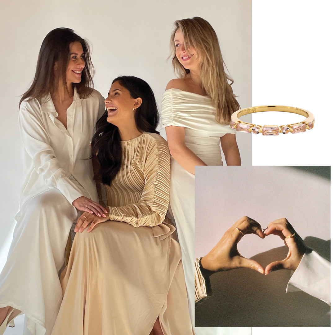 Twee van mijn allerbeste vriendinnen zijn Linda en Dunja. Wij zijn al ruim 16 jaar vrienden! Om een leven lang herinneringen en de meest bijzondere vriendschap te vieren, hebben we samen deze ring ontworpen. Ik ben zo dankbaar en trots op onze vriendschap. De ring heeft lichtroze stenen in verschillende vormen. Het is gemaakt van 925 sterling zilver en verguld met 18K goud.